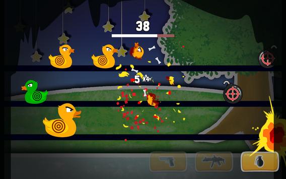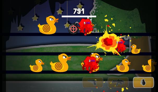 Use the powerful pistol to shoot, smattering sub machine gun to kill and the grenade to bomb them and deal great area damage to blast and kill those ducks off the lanes to gain points.