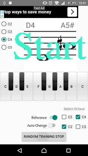 Select the scale you want to generate from the piano keyboard and the corresponding sound will be played. It also displays notes on the staff.