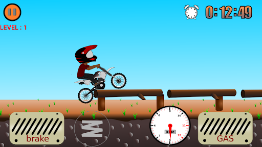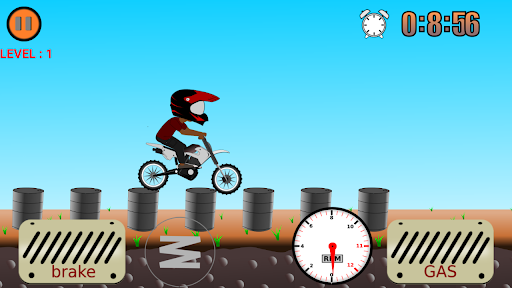 This extreme moto game brings chaos to your phone when you try to get through obstacles to reach the finish in the game, the thing that is certainly interesting is the extent to which your skills in controlling the dirt bike jump and go down obstacles in the game, although there are no hills, but hill climbing skills are very needed when crossing wooden planks and drums in the game.