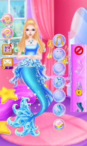 Come to help this nice girl make up beautifully for the party and try your best to pick one wonderful mermaid dress for her.