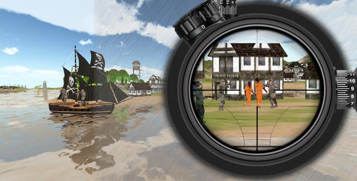 You were drop on a known pirate island by a battleship. You are alone with your sniper and you have to track all the pirates on island and kill them all one by one.