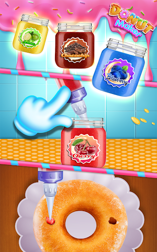 Realistic Cooking Steps! Select Flavor, Mix Ingredients, Refrigerate, Roll Dough, Fry Donuts, Fill with Jelly, Select Glaze and Decorate! Be a Baker Chef!