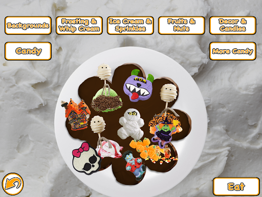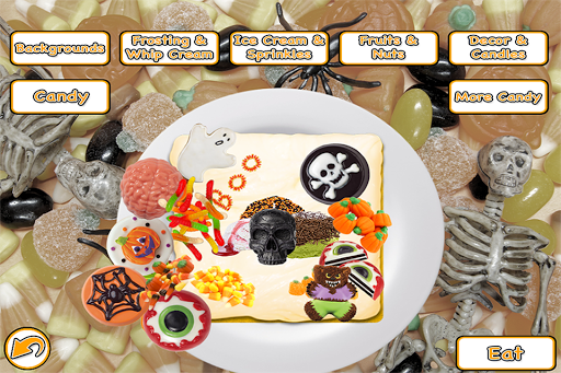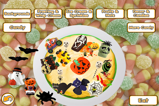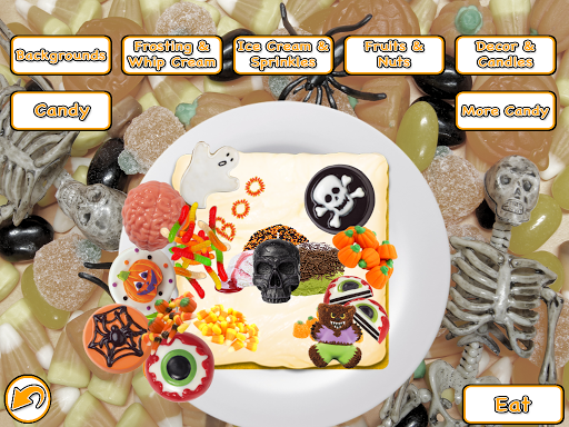 Now, choose from 7 Backgrounds and Decorate with 120 Toppings from Candy Corn to Ghosts: