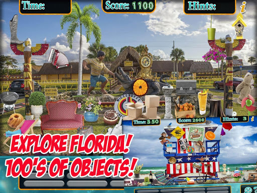 Find Hidden Objects in Florida! Explore Famous Destinations like Miami Beach, Orlando, Daytona, Boca Raton, LegoLand, Swamp Land and more!