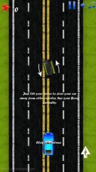 Did you mean: If you love driving than this is your game. Drive as fast as you can in one straight highway. You have no speed limit. Tilt your device, to steer away from other vehicles and collect as much checkpoints as you can. Beware, steering your car too much reduce your speed, so keep stable. If you think you can do with more speed, go ahead and press the boost button and take your trill to the next level. There's one rule in this classical highway car avoidance game, just make sure to keep away from the incoming traffic