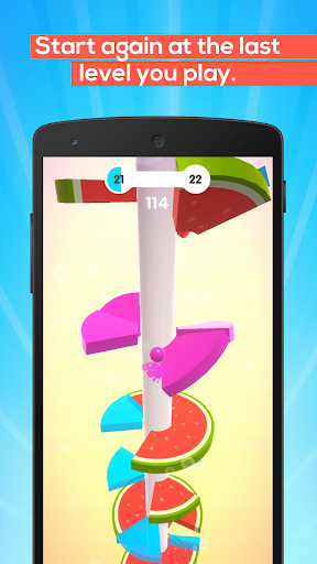Let the bouncing ball jump jump around and fall down in our exciting helix jumping game! Don’t let the ball splats and touches the blue parts or you will die. Try our exciting ball dropper game and you will get addicted fast! You will find levels with oranges, pineapple, watermelon slices, or anything you usually find in the fruit basket. There is no falling fruit, but fresh fruit slices as platform. Let the ball fall and drop it down the tower & fall! Try it now for FREE.