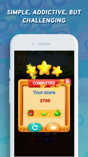 Do you need to blast many juicy fruits and fill up your fruits basket quickly? Use our power ups such as the fruit jelly candy, and bonuses! We also have some boosters to help you complete a level easily. Match more than 3 fruits, create chain reactions and get higher scores. Matching 5 fruits at once will get you a star fruit jelly candy to blast off your fruits.