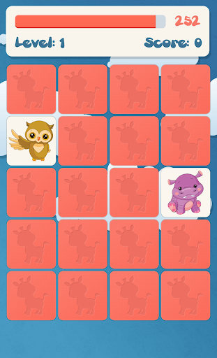 For each level, player is required to tap the square buttons and need to memorize what is behind it in order to match its couple. Players are required to complete a level in minimum finger taps to match all animals.