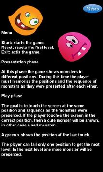 The goal is to touch the screen at the same position and sequence as the monsters were