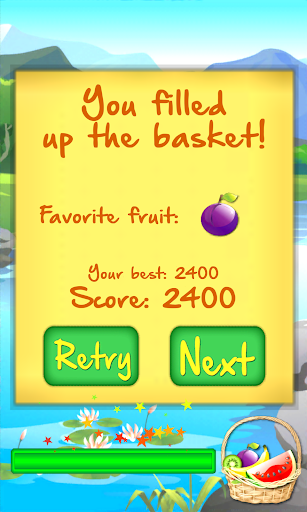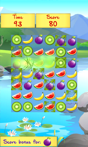 - match 3 or more fruits of the same kind by swiping them horizontally or vertically;