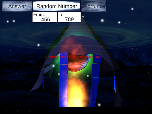 This app extends the typical 8-ball functionality into also providing random numbers (between custom limits) and fortune-cookie type fortunes.