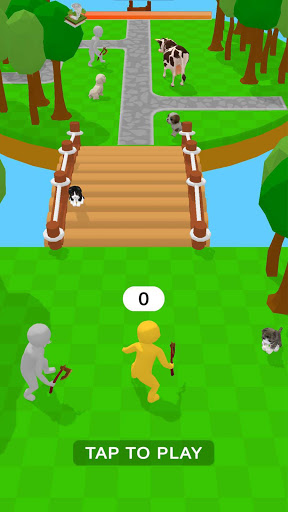 Collect the animals and other people from the way to join you in wood cutting. So collect as much people and animals as you can so that you can save more and more people before the volcano erupts