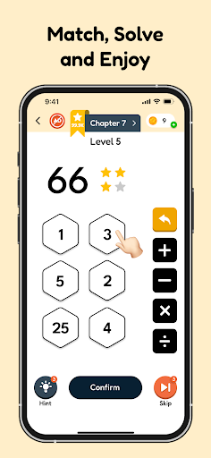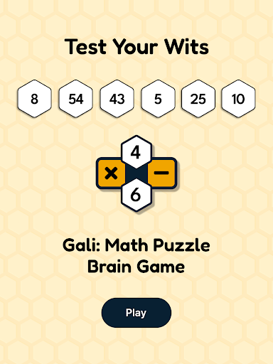 "Gali: Math Puzzle Brain Game" is a mathematically addictive game that challenges you to combine given numbers using basic arithmetic operations - addition, subtraction, multiplication, and division - to reach a specific target value. You'll find yourself immersed in an intellectual adventure that will test your wits, sharpen your mental agility, and bring out your inner math solver, similar to solving a challenging round of Sudoku or cracking the daily Wordle.