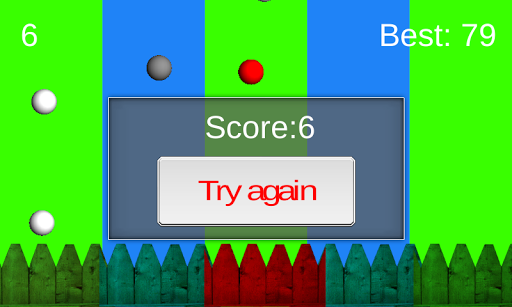 In this game screen is divided into 5 parts. There are coloured balls falling down. Your objective is to touch parts of the screen in the same order in which white balls will touch the fence on these parts of the screen. (don't care about not white balls). Warning: game isn't easy :)