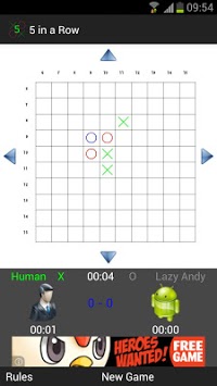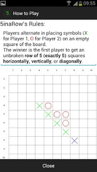 Five in a Row is a popular strategy board game, also called Gobang, Gomoku or Caro. The rules are very simple: players move alternatively, trying to get an unbroken row of five pieces horizontally, vertically, or diagonally before opponent to win. You can play with your friend or relax playing with your own phone with different levels of difficulty.