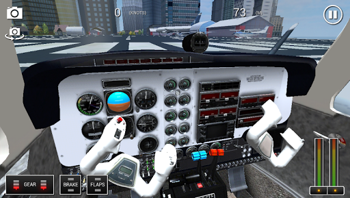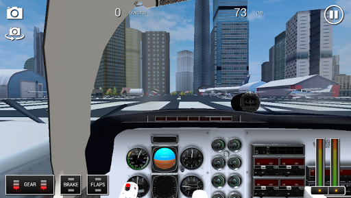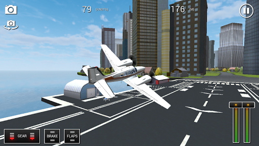 Use the on screen joystick, or tilt controls, to control the aircraft. On screen buttons can be tapped to control throttle, gear, brake, camera, and camera reset. You can reset your airplane in the pause menu.