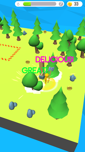 Are you ready to become the lumberjack? Use new axes for cutting down trees. Improve the strength and dexterity of the lumberjack.