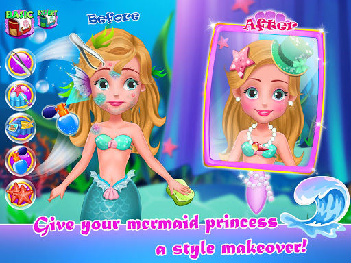 Clean them up! Use tons of magical tools like tweezers, wax, creams, and magic potion to brush and beautify these messy mermaids! You can even cast magic spells to change the mermaid tails! Ready? Let's dive in!