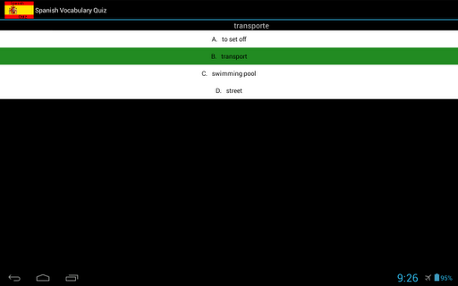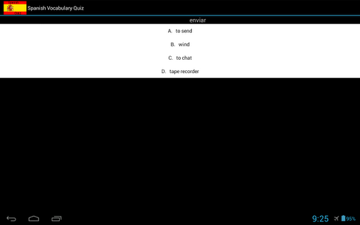 Spanish Vocabulary Quiz is the perfect tool, whether you are cramming for an exam, just starting to learn Spanish, or are simply taking a trip to Spain.