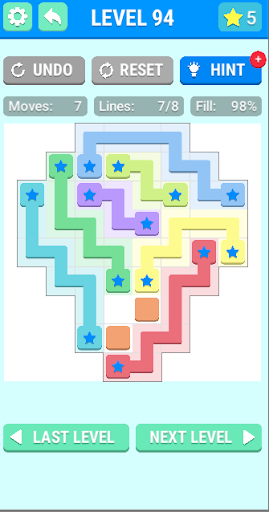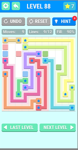 The game features connect dots puzzles : each puzzle has a grid of squares with colored dots occupying some of the squares. The objective is to connect dots of the same color by drawing pipes line between them so that the whole dots grid is occupied by line pipes between dots. However, the pipes line cannot cross each other. there is an arcade difficulty is determined by the size of the grid connected dots puzzle, ranging from 5x5 to 11x11 squares. The game also contains a time trial mode. an especially mode with the some number of level are different puzzle just enjoy them all.