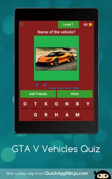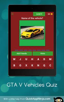 In the GTA V quiz you are trying to guess the name of all the vehicles from pictures.