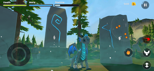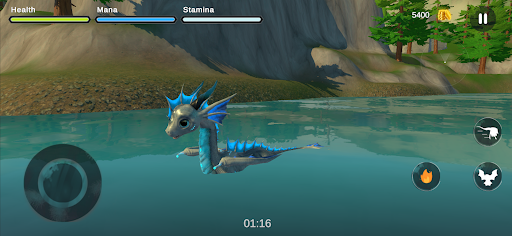Unleash your power in this simulator by flying over mountains, diving into seas, jumping over obstacles, and running to catch animals. Breath fire and even shoot fireballs to make stronger attacks and win battles. Don’t forget to collect mana bottles to fill fire supply and take a rest to restore stamina.