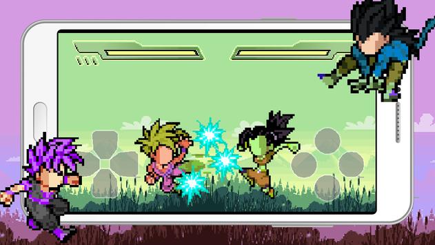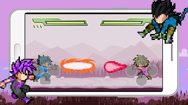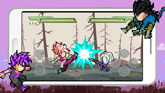 A fighting game with retro arcade style in super battle. DB warrior in new pixel style and ultimate skill