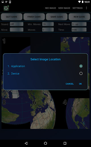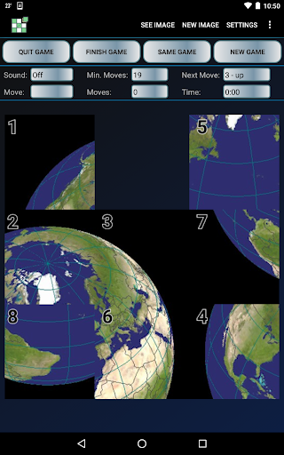 • What makes this app different from other slider games is that it calculates the minimum path and displays the minimum number of moves needed to solve the puzzle. Since showing the next move can be turned on or off, one could solve the puzzle without the next move showing and if not the minimum path, play the same game this time with the next move showing.