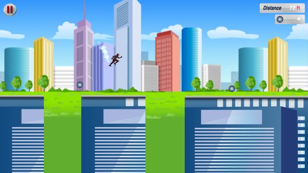 Run and jump over buildings with our action hero. Colect coins. Get as far as you can. Speed increases over the distance. -One tap play. -Tap to jump. -Addictive gameplay.