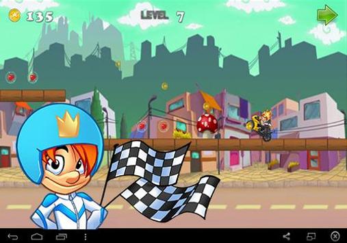 Jump and race across the level and overcome many obstacles like mushroom, rocks and trees that prevent racer from completing the race!