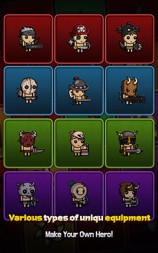 Build your hero to challenge yourself to more demanding dungeons and collect precious items.