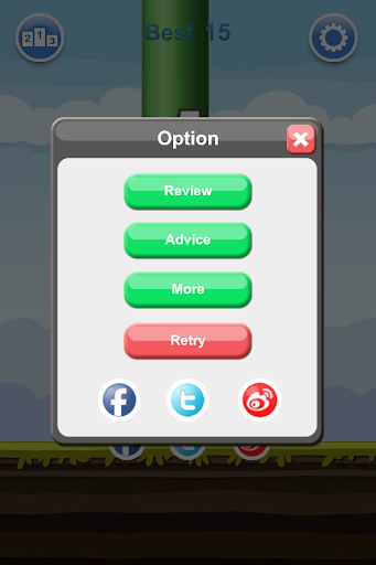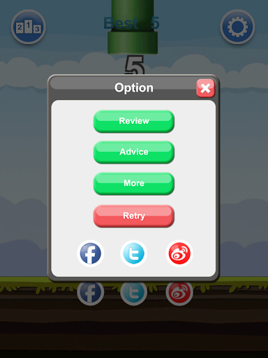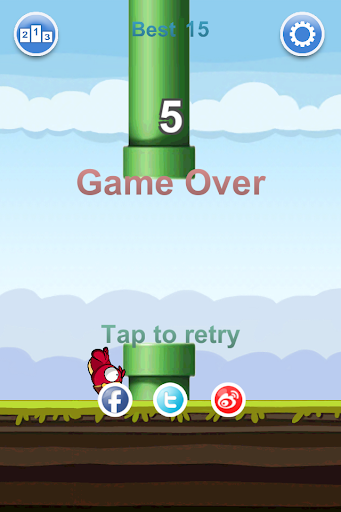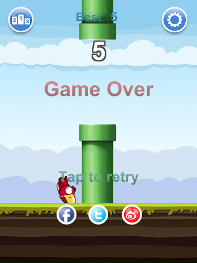 Tap to flap your big mouth bird to fly. Avoid the moving pipes. The moving pipes are more interesting. Beat your friend’s high sore at leaderboard. Share with your friends at Facebook, Twitter, SinaWeibo.