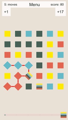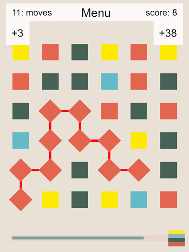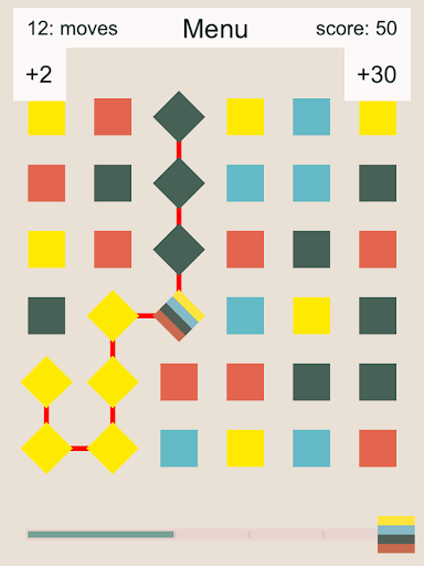 Goal is to make as many points as possible. You make points by connecting two or more cells of similar color. Your moves are limited. When connecting many cells you will also gain additional moves.