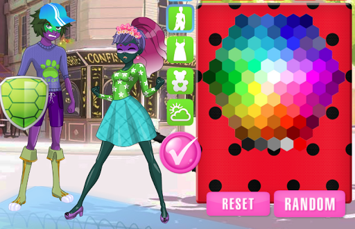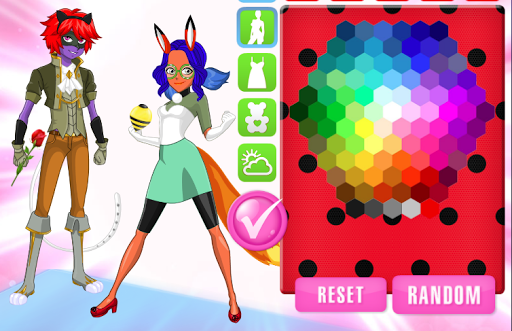 This maker will help you create your unique character in the style of Ladyb. You can choose for your hero a lot of costumes, shoes, hair, mask and accessories. Color these items in your favorite colors. Create a superhero-girl and superhero-boy so that they can fight together against the villains.
