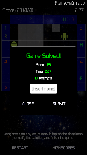 Your score is submitted to the global online highscores, where you can compare it with the results of people from all over the world!