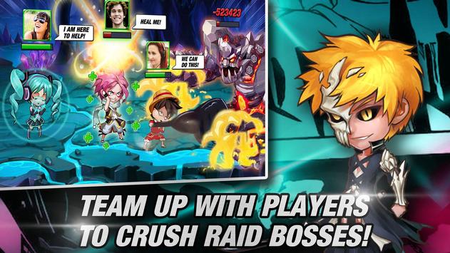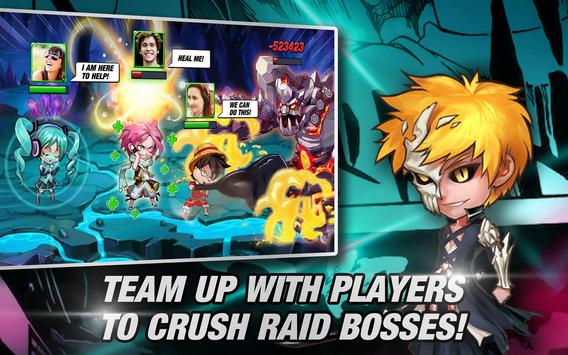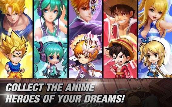 -- Hundreds of manga heroes at your service. Call them to join your team and witness their signature skill attacks!
