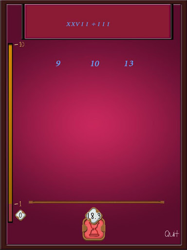 Goal of the game is to pass many different levels with math questions (addition, subtraction, multiplication, division, fractions, square roots, roman numbers conversion).