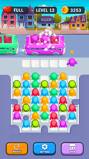 Show bus driving games skills on seat jam bus racing tracks. Bus driver matches color of the passengers in bus parking game