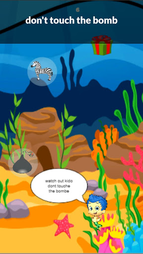 Chose your character and grap the animals bubbles to stay playing and avoid the bomb do not touche it at all or you will lose
