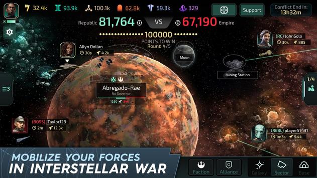 Players will form or join an alliance and engage in epic galactic warfare with other players from around the world in the hopes of emerging victorious. Power is earned by outwitting adversaries in carefully orchestrated attacks and by building a mighty coalition through the loyalty of other players. In Star Wars: Rise to Power, players embrace destiny by engaging in diplomacy or deception to ultimately become a leader of the Empire or New Republic.