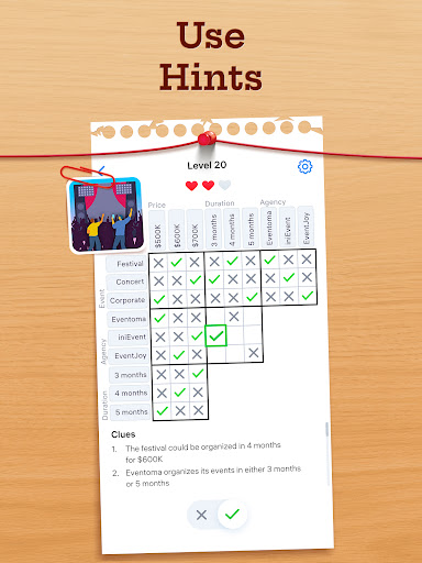 We read all your reviews and always try to make the game better. Please leave us some feedback if you love what we do and feel free to suggest any improvements. Play Logic Puzzles, put your gray matter to work, and have fun!