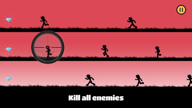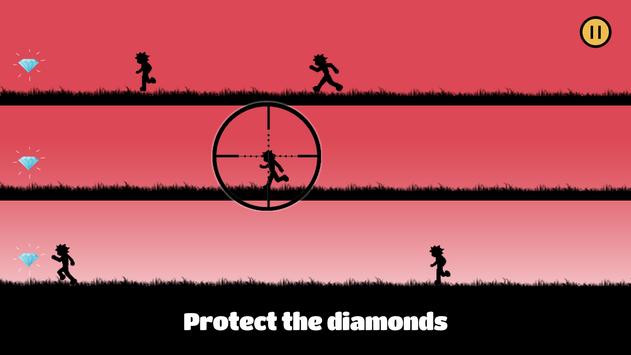 Your mission is protect three diamonds. You - the soldier must kill all Stickmans moving close to the diamonds.