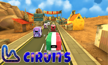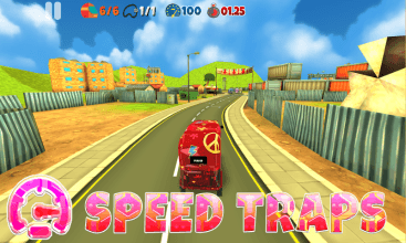 berkeliling lalu lintas di perangkap kecepatan, Drive dan Ras sekitar sirkuit di lap dan mengalahkan pembalap lainnya. Becak Racing diatur di kota sisi bukit yang indah dengan lebih dari 20 Lintasan mengemudi yang unik dan 100 tingkat