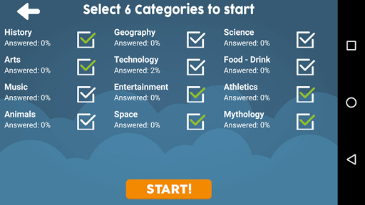 👍 16 categories of knowledge including, history, sports, geography, technology and many more