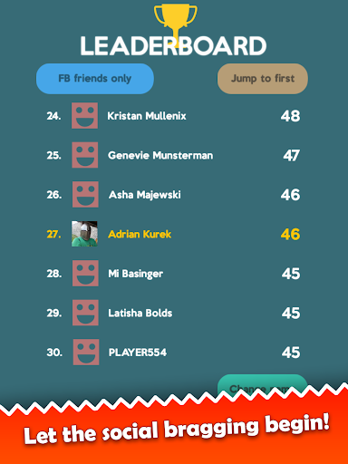✔ Let the social bragging begin! You can connect with Facebook to invite friends and see who's got the faster precise reaction game skills. If you have Facebook friends that play this reaction match game too, you can filter out the leaderboard to show only those. This way you can initiate challenges to see who can get the highest score. Can't decide who should create the presentation? Who should take out the garbage? Who must stay in late? Settle the issues with TapiX, challenge friends & family to see who gets the highest score and who's the loser that must do the deeds.