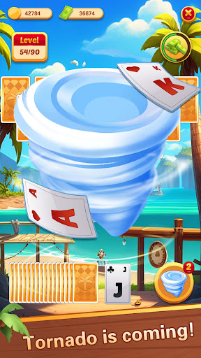 One of the most exciting features of Solitaire Go is the Tornado powerup. With the Tornado, you can clear 10 cards in an instant, helping you quickly make your way through those difficult levels, use it wisely!