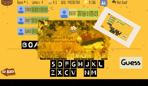 All the hosted/guessed words should be in English and should be a perfect Isogram (An Isogram is a Word with all unique letters). Like Lingo, Scrabble and most other popular Multiplayer Word Guess games people (except famous personalities), and city names are not allowed. This game uses dictionary to check if a word is a correct English Word or not. Please email us if you ever happen to come across a word which is in-fact correct, but is now marked as not.