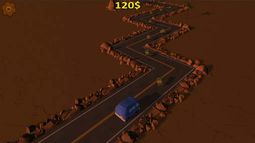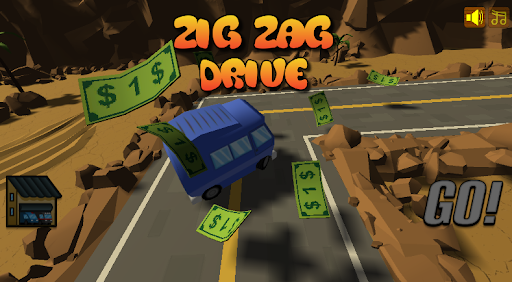 Survive in a zig zag road while collecting cash to increase your score and unlock new vehicles .