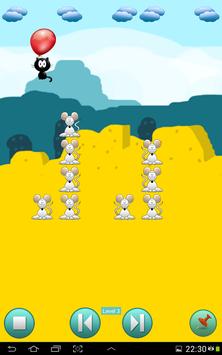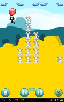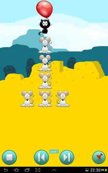 You have to drop a flying cat by piercing a balloon to catch all mice. If you succeed, the level will become more complex and the cat will move faster. This require s a fast reaction speed.
