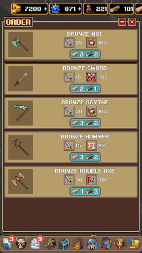 - Order Crafters to create gear!
